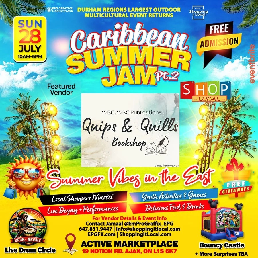 It was a lovely day in the sunshine yesterday. We met lots of folks – readers and otherwise, made some great connections, and even sold some books! We even sold out of our copies of Abigail’s thriller, The Violence of Fire! (not to worry, we’ll have more copies on hand at the next event) I … Continue reading Caribbean Summer Jam Part 2